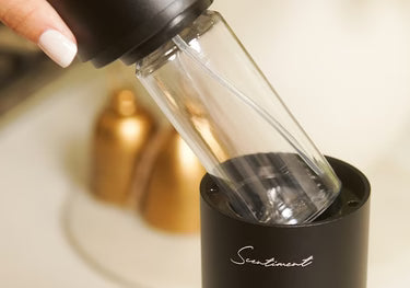 Retirez la bouteille vide si nécessaire, puis placez l’une de vos huiles parfumées HEAVEN SCENT™ à l’intérieur en la vissant
